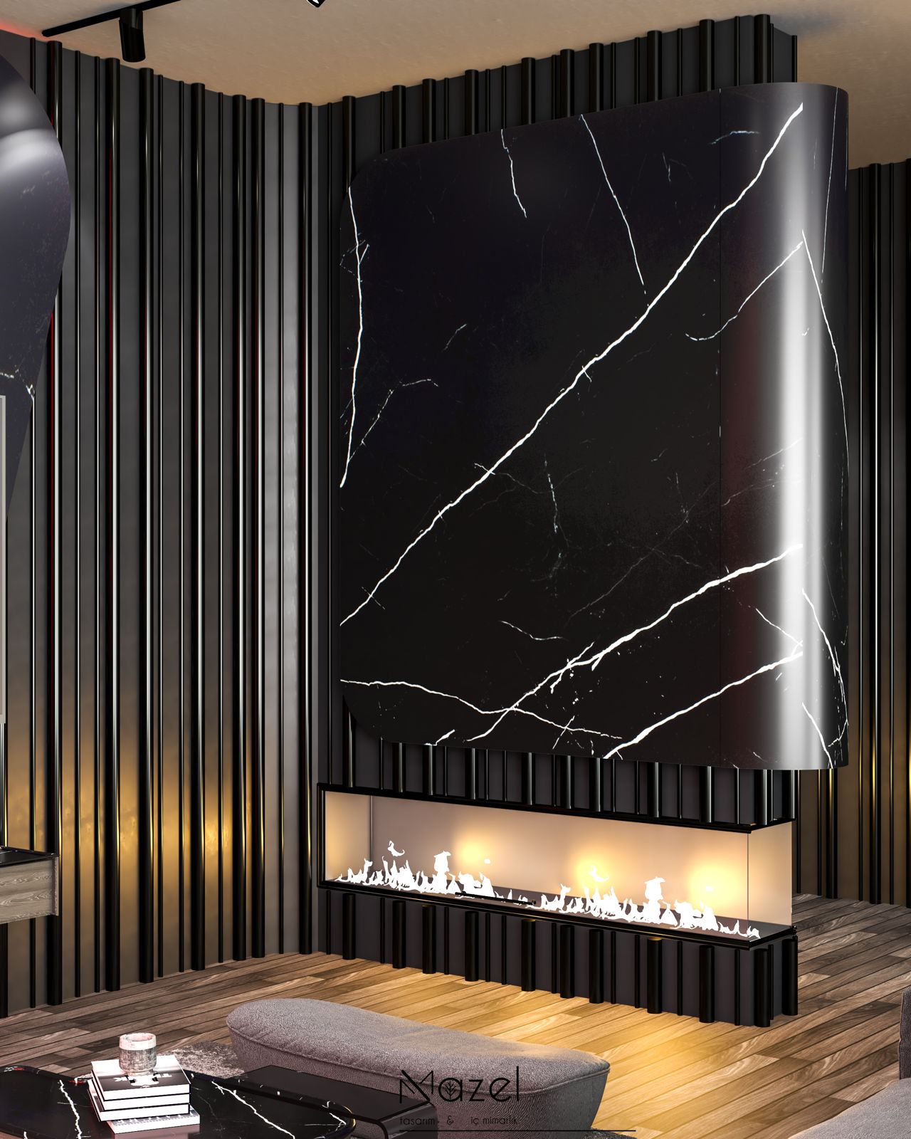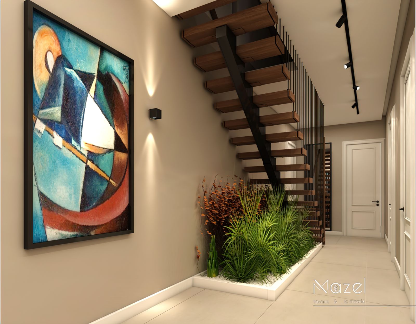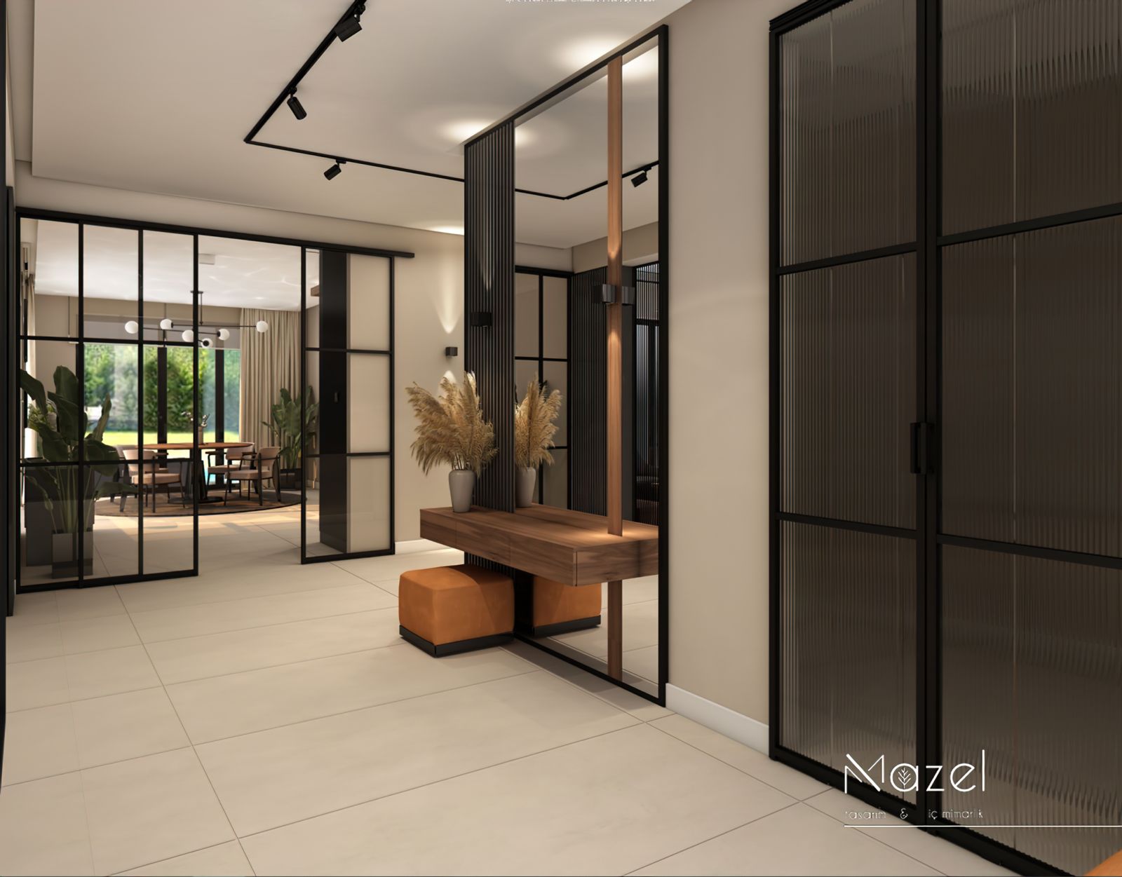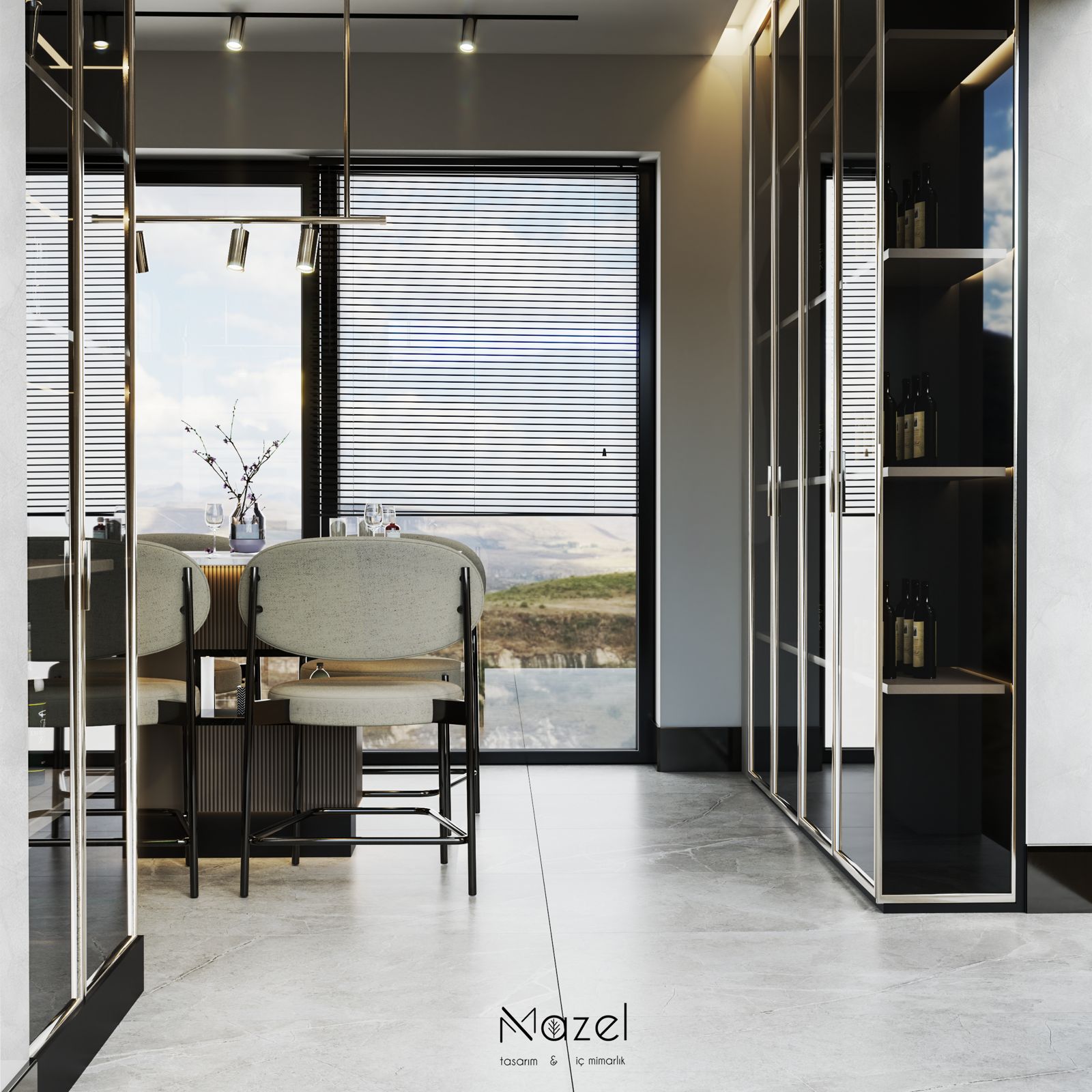 Bu projede, klasik çizgilerin modern dokunuşlarla yeniden yorumlandığı bir koridor tasarımı oluşturduk. Mermer detaylar, siyah çerçeveler ve aydınlatma çizgileriyle mekâna derinlik kazandırıldı. Her detayıyla sade ama güçlü bir atmosfer hedeflendi; ilk adımda zarafeti hissettiren bir giriş alanı tasarlandı.